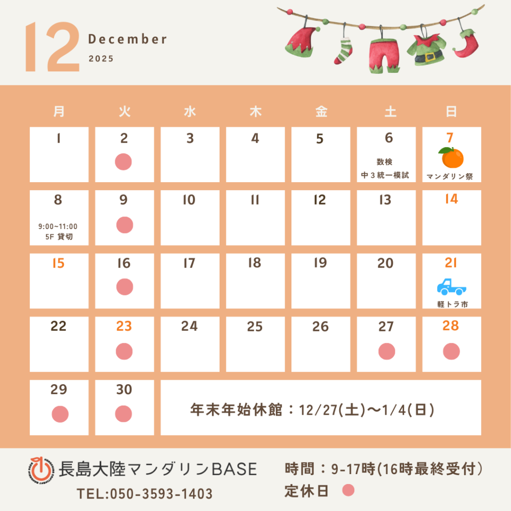 年明けは、1/5(月)よりお待ちしております。みなさま、良いお年をお迎えください🍊